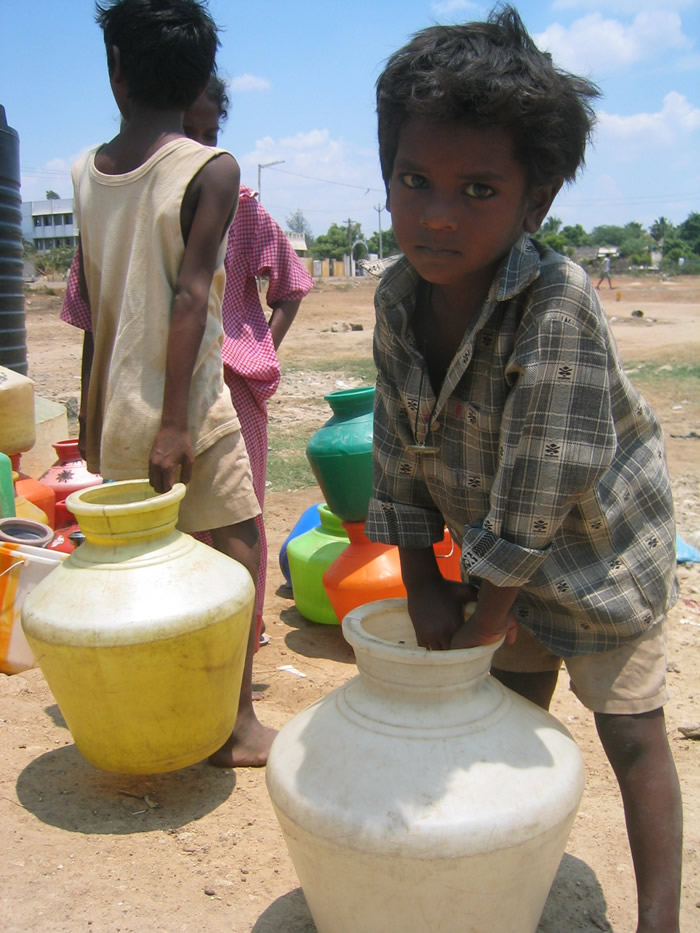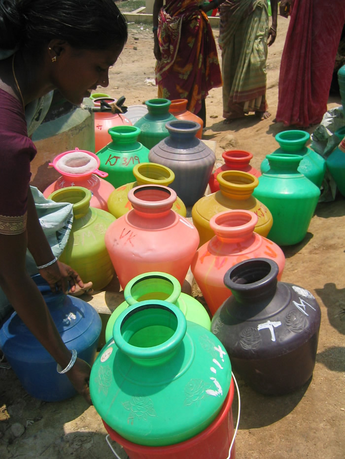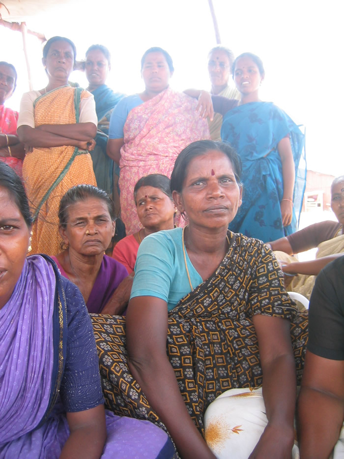 Women at the temporary shelters of Thorapakkam, Tamil Nadu |