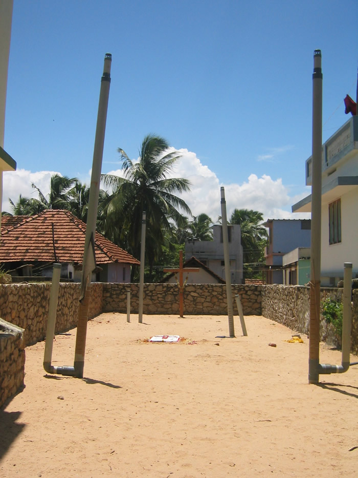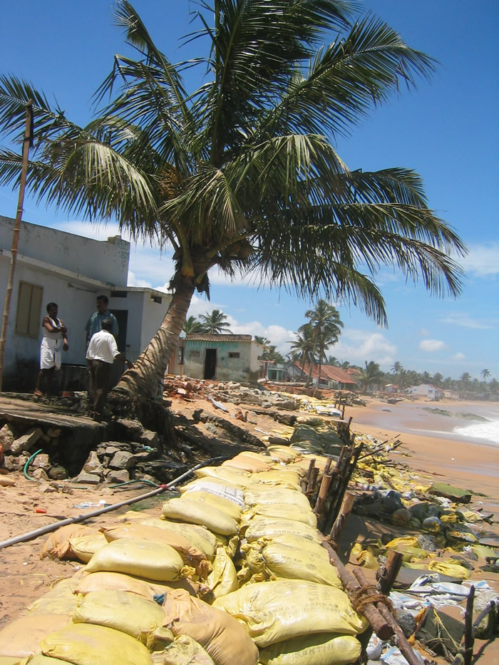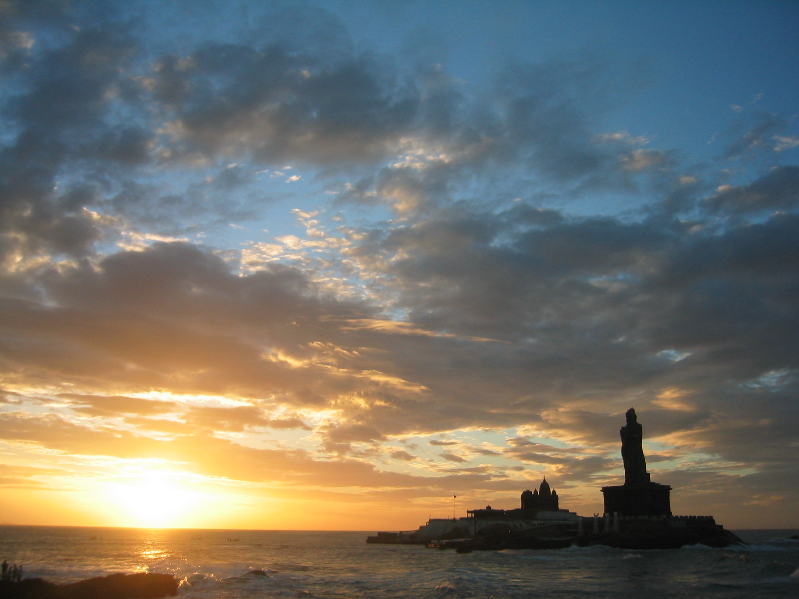 The tsunami washed over the base of these monuments in Kanyakumari,